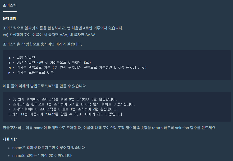 즉, 프로그래머스의 조이스틱 문제 및 TC가 약간 못난 것 같으니, 그냥 백준 3663번을 기준으로 풀이를 작성한다.