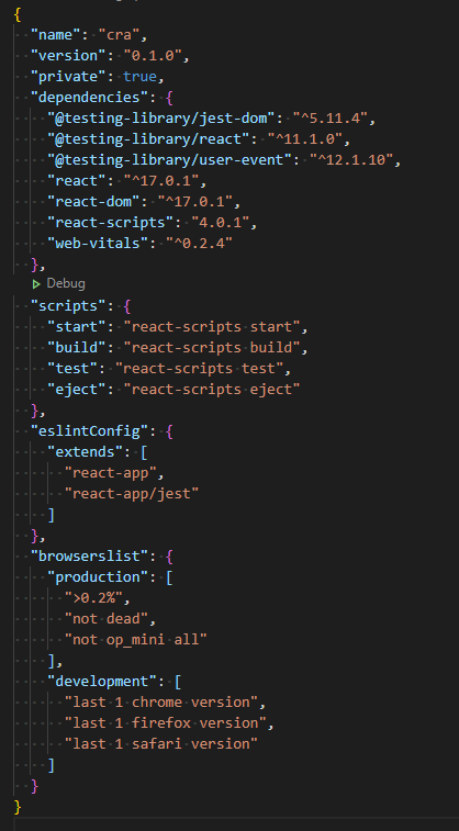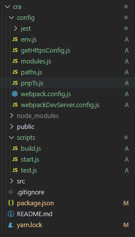 - CRA는 프로젝트 디렉토리를 간단하게 하기 위해서 [scripts], [config] 디렉토리 등 세부적인 설정 값들을 숨기고 있고, 이러한 설정 값들을 커스터마이징 해야할 때, 우리는 eject를 실행하여 숨겨져있는 설정을 꺼낼 수 있습니다.
